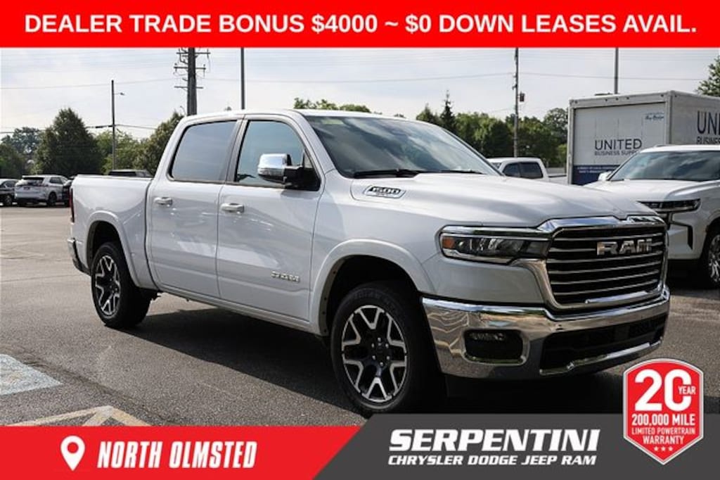 2025 Bright White Clearcoat Ram 1500 Laramie 4D Crew Cab 4WD 3.0L I6 8-Speed Automatic This Ram 1500 has many features and is well equipped including.